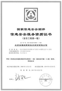 3)北京市信息安全服务能力等级证书4)信息安全等级保护安全建设服务机构能力评估合格证书